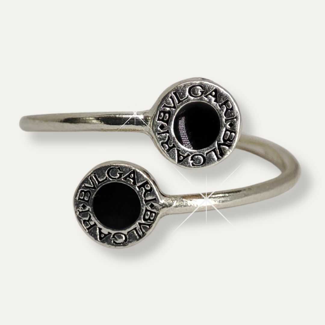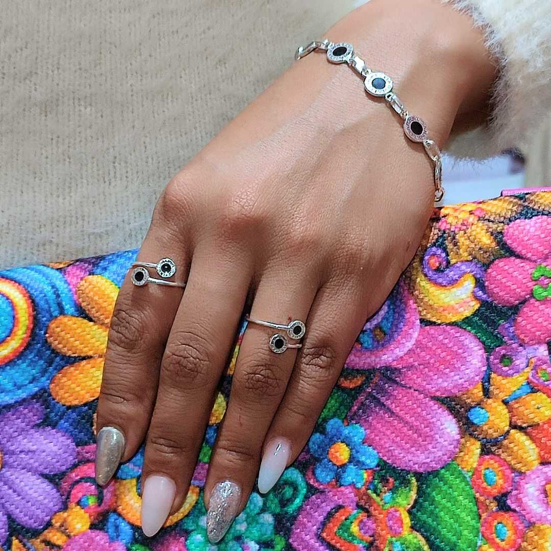 Esta joyita te hará sentir como una diosa empoderada 😎 por su diseño del doble círculo negro 🕳 🕳. Este anillo es de plata ley .925.