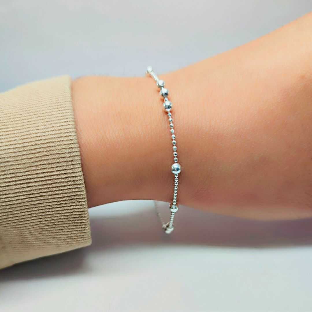Con esta pulsera si la andamos armando pa´ la vida amix. Algo bieeen hecho de esta joyita, es su look de tener unas bolitas grandes🪩. La pulsera es de plata fina de .925 con un estilo equilibrado 💕.