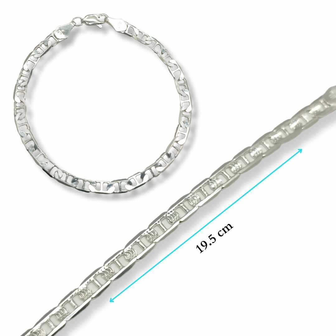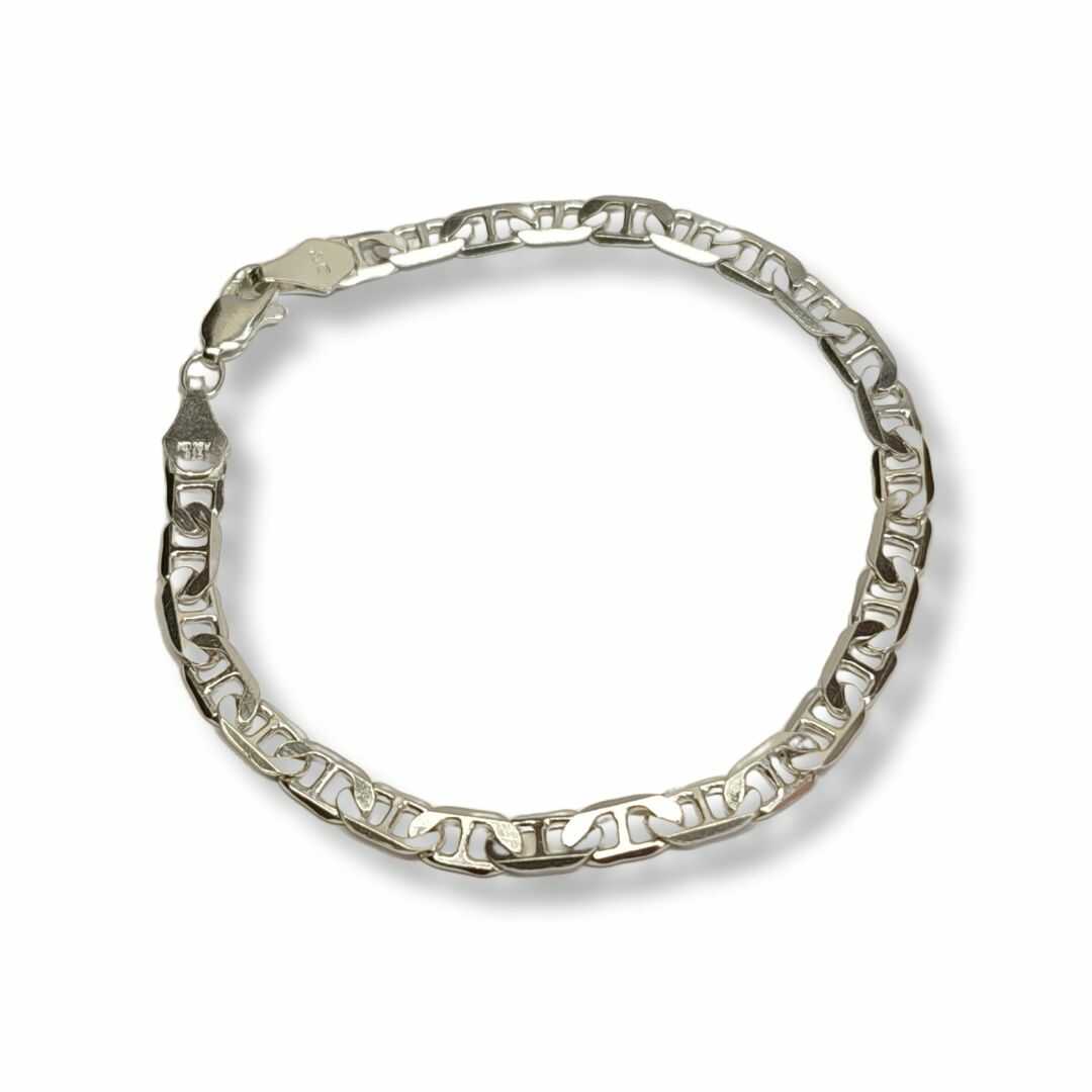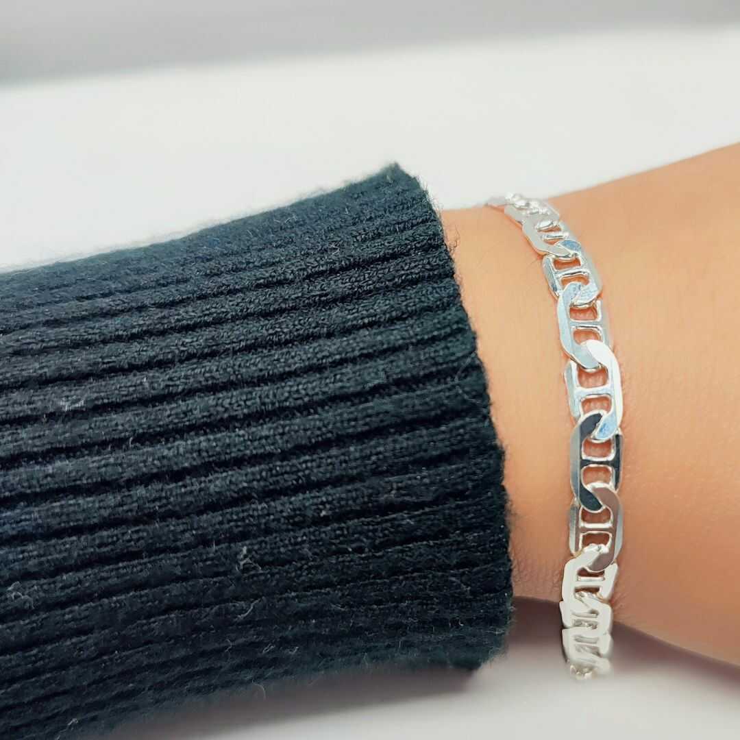 Nmms amix, necesitas saber que esta joyita de plata de .925 ⛓ está súper wooow. Su diseño consiste en eslabones 🔗del mismo tamaño en forma rectangular con huecos en forma de cuadrados pequeños ⬛. La pulsera es plana.
