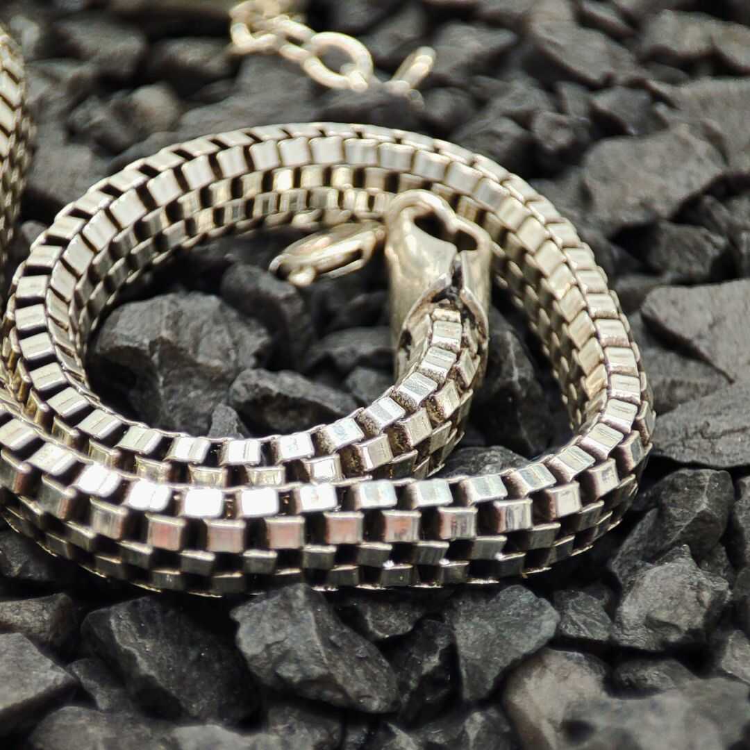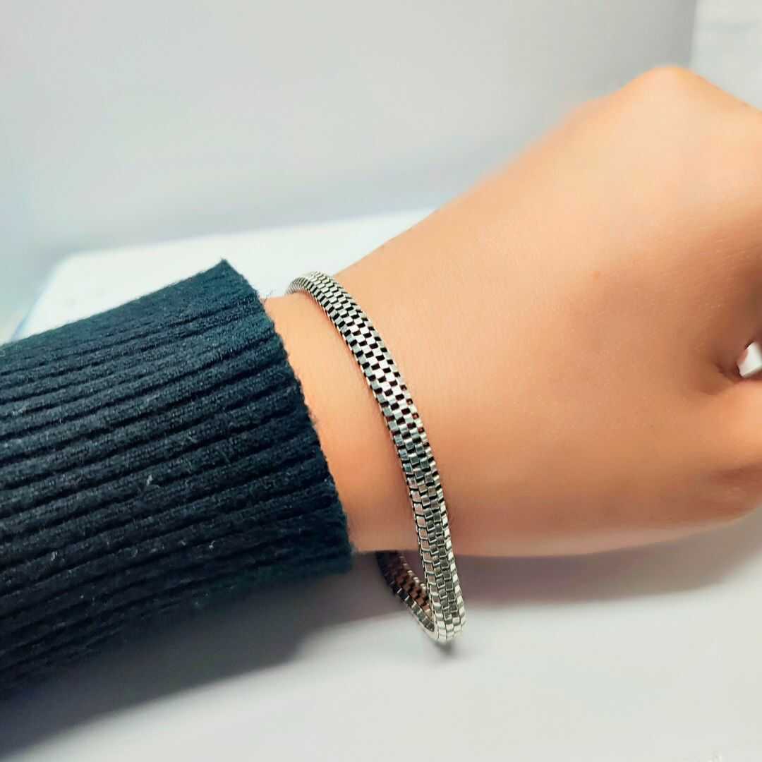 Esta pulsera de plata ley .925 tiene un diseño bien rifado ✨✨✨, baby. Su look se distingue por un trenzado que pareciera que forma unos cuadritos pequeños🏁🏁🏁.